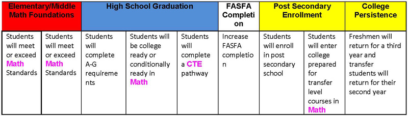 Measuring what we do is the only way we'll know what's working, and what's not. Through S4C, we've built an environment of trust, where data is being used to diagnose and improve student success, not to find someone to blame. goals